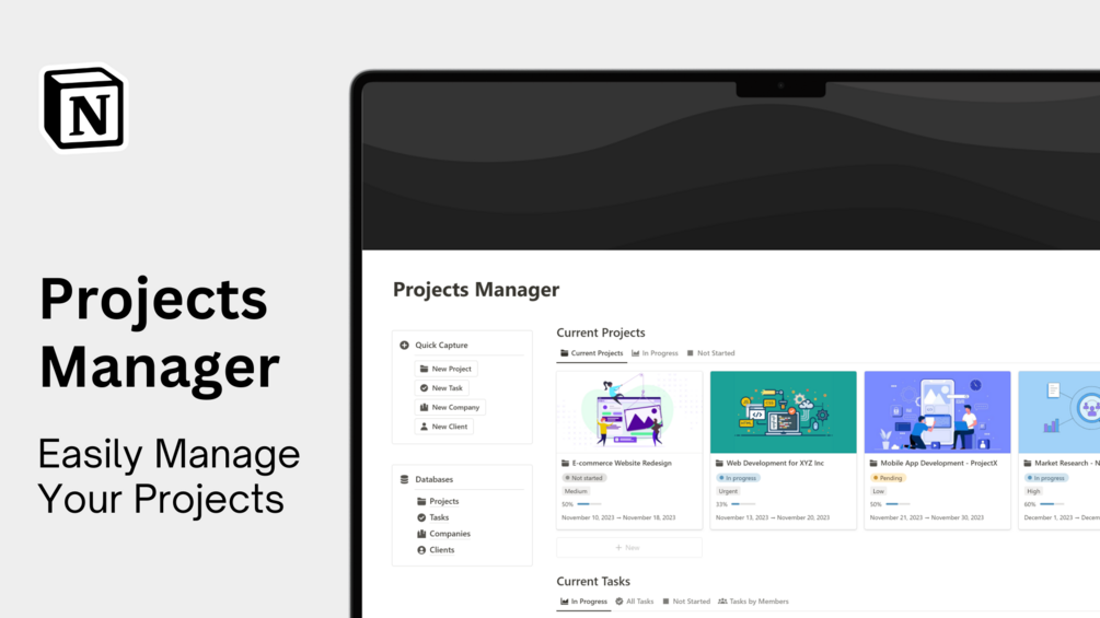 Are you juggling multiple projects and feeling a bit overwhelmed? Say hello to your new best friend - our custom-designed Project Manager Template for Notion! We've crafted this template with one goal in mind: to streamline your workflow and bring some zen to your project management.
