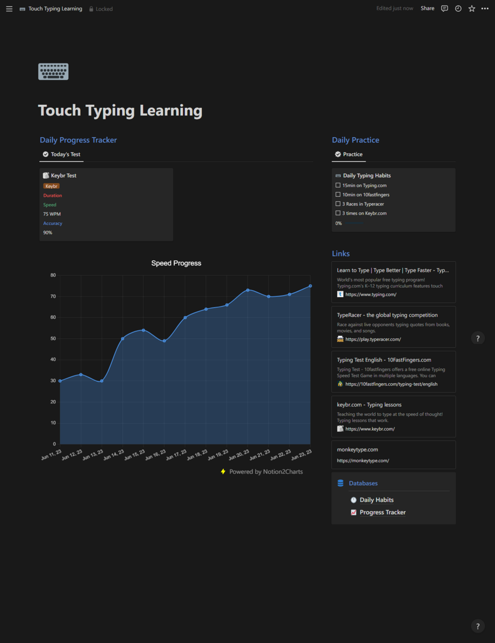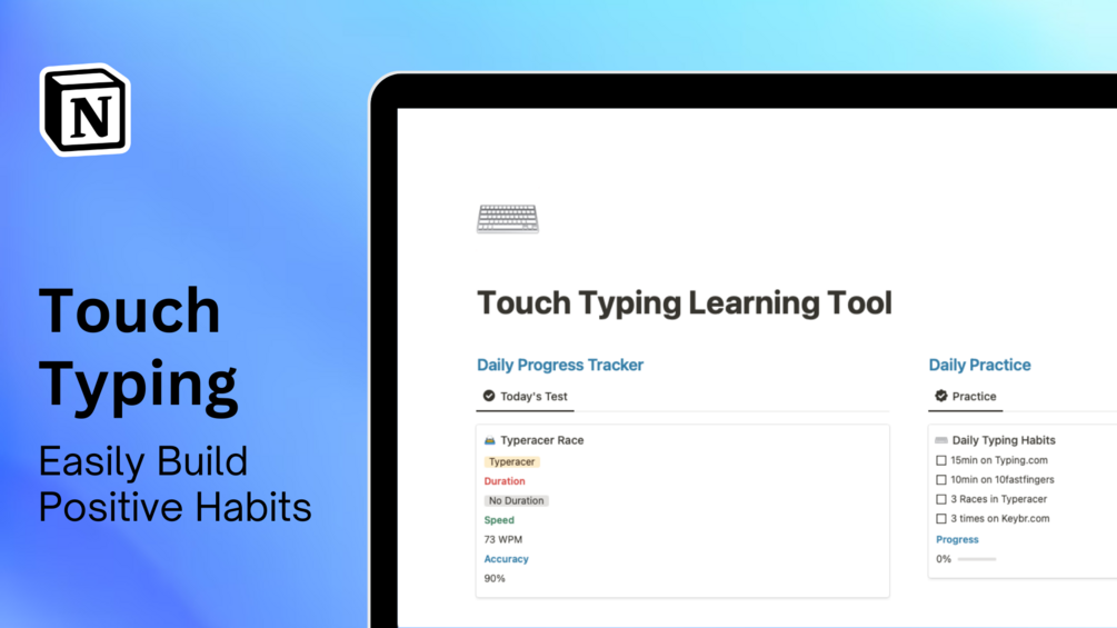Discover an easy way to improve your typing skills with our touch typing learning tool. Simply incorporate it into your daily routine and watch as your typing speed and accuracy soar. With its simple interface and helpful progress tracking, you'll be typing like a pro in no time!
